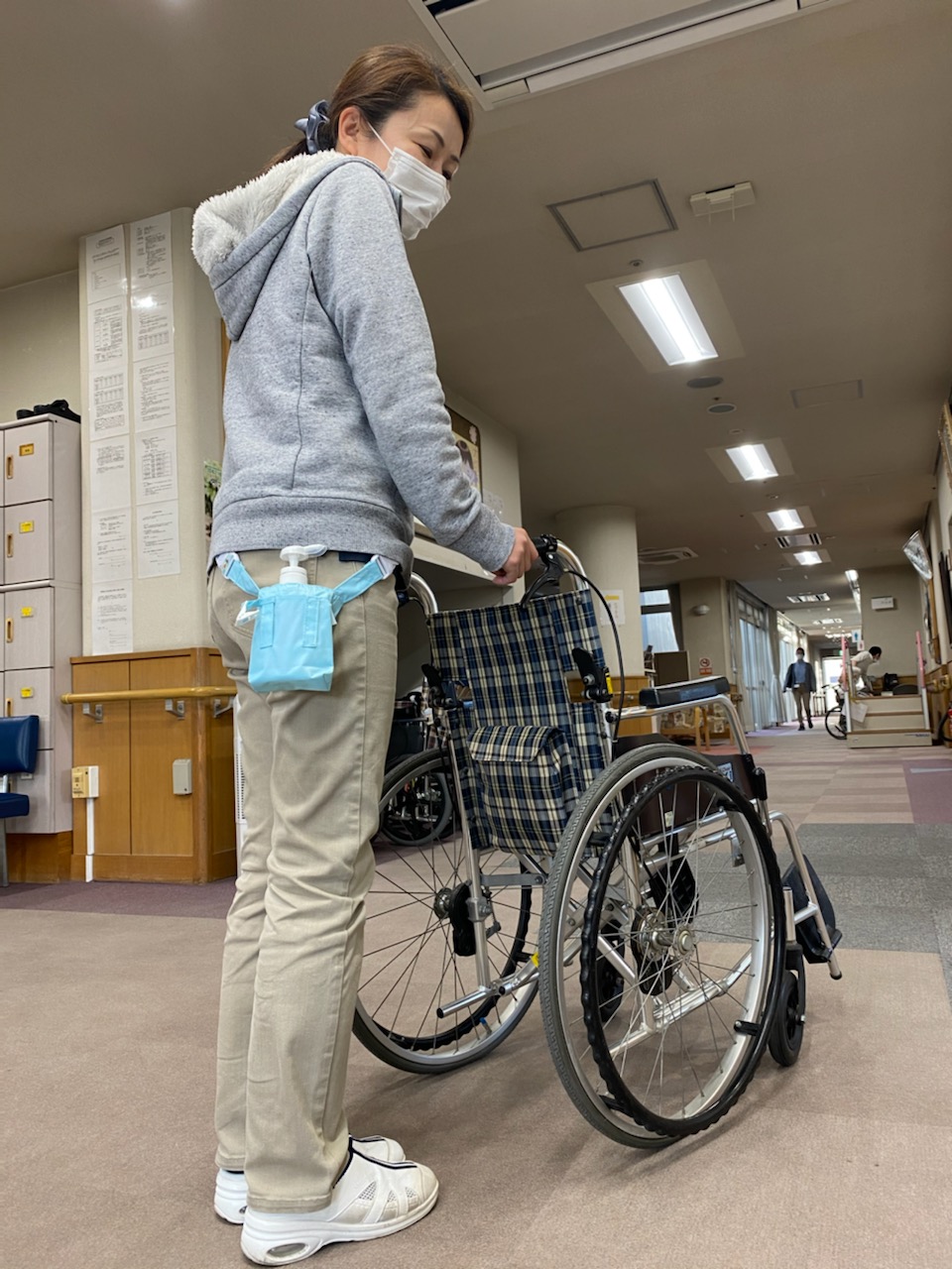当法人では、「職員が罹患しない。ウイルスを持ち込まない。媒介者にならない。」ことを目的に、これまで以上に手指の消毒を徹底できるように、全職種全スタッフに、速乾性アルコールジェルとそれを入れて持ち歩けるバッグを支給しました(肩から掛けてポシェットに、腰に巻いてポーチにと、個々に工夫してます)。